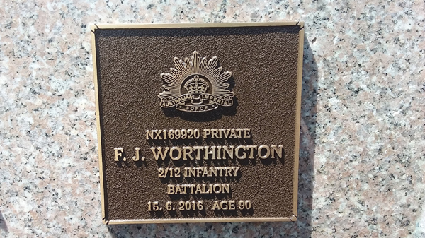 | Worthington | F J | photo | 15/06/2016 | 90 | NX169920 Private 2/12 Infantry Battalion | ||