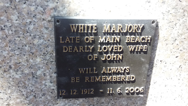 | White | Marjory | photo | 12/12/1912 | 11/06/2006 | late of Main Beach w/o of John | ||