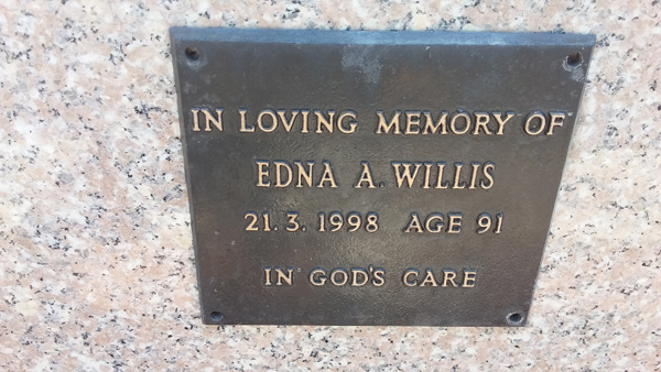 | Willis | Edna A | photo | 21/03/1998 | 91 | |||