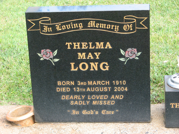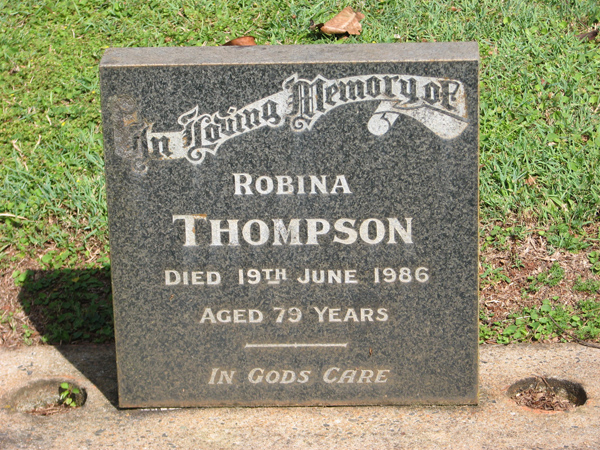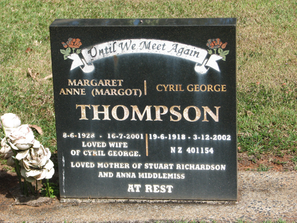 | Thompson | Margaret Anne (Margot) | photo | 8/06/1928 | 16/07/2001 | w/o Cyril George, m/o Stuart Richardson & Anna Middlemiss | |