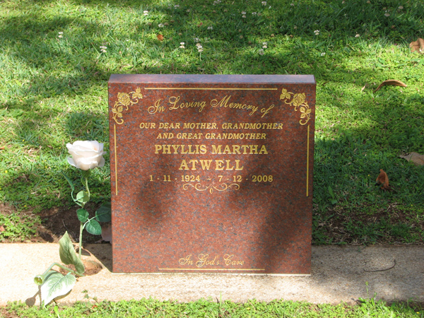 | Atwell | Phyllis Martha | photo | 1/11/1924 | 7/12/2008 | ||