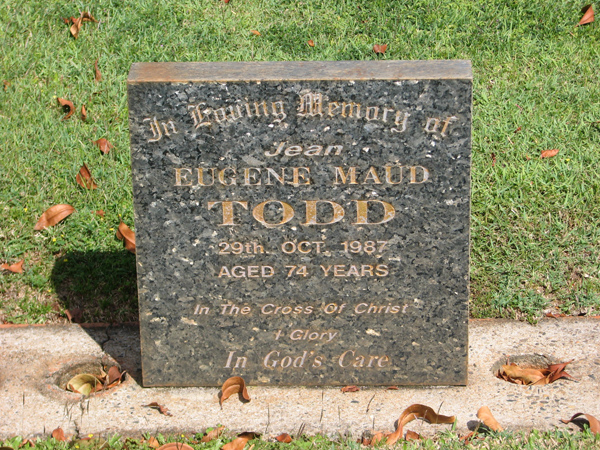 | Todd | Eugene Maud 'Jean' | photo | 29/10/1987 | 74 | ||
