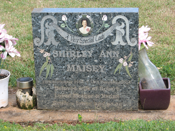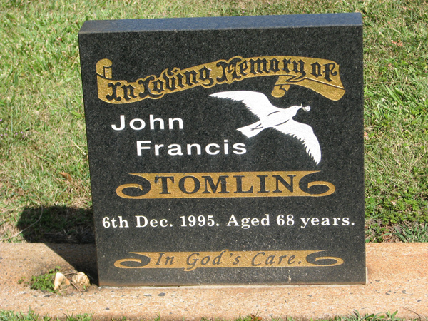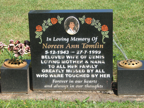 | Tomlin | Noreen Ann | photo | 5/12/1943 | 27/07/1999 | w/o Denis | |