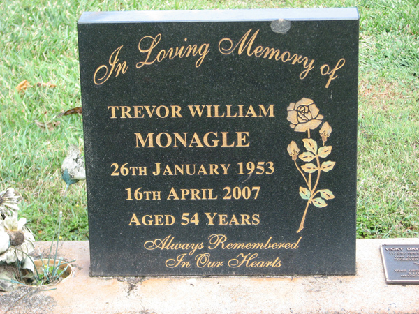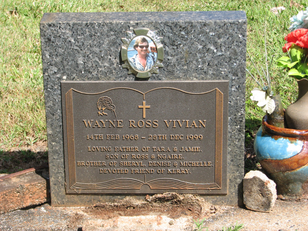 | Vivian | Wayne Ross | photo | 14/02/1968 | 28/12/1999 | f/o Tara & Jamie, s/o Ross & Ngaire, b/o Sheryl, Denis & Michelle, devoted friend of Kerry | |
