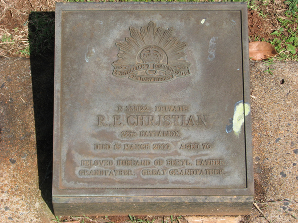 | Christian | R E | photo | 15/03/2000 | 76 | N 335122 Private, 28th Battalion, h/o Beryl | |
