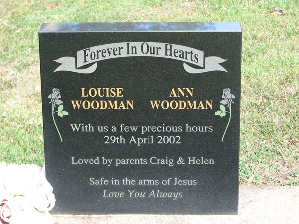| Woodman | Ann | photo | 29/04/2002 | parents Craig & Helen | ||