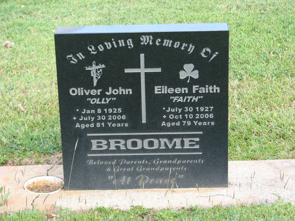 | Broome | Eileen Faith 'Faith' | photo | 30/07/1927 | 10/10/2006 | 79 | |