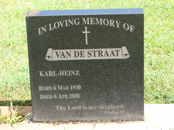 | Van De Straat | Karl-Heinz | photo | 6/03/1930 | 6/04/2008 | ||