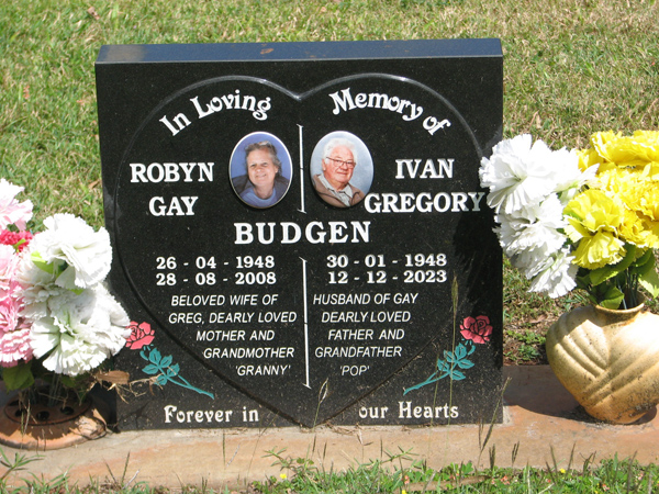 | Budgen | Robyn Gay | photo | 26/04/1948 | 28/08/2008 | w/o Greg | |