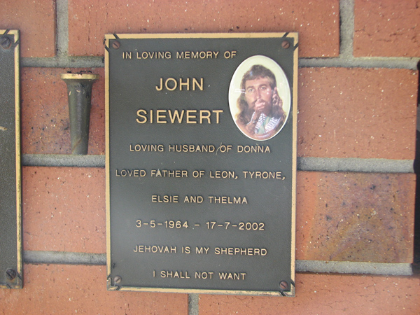 | Sewert | John | photo | 3/05/1964 | 17/07/2002 | h/o Donna, f/o Leon, Tyrone, Elsie & Thelma | |