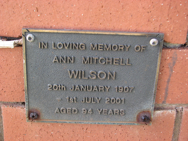| Wilson | Ann Mitchell | photo | 20/01/1907 | 1/07/2001 | 94 | |