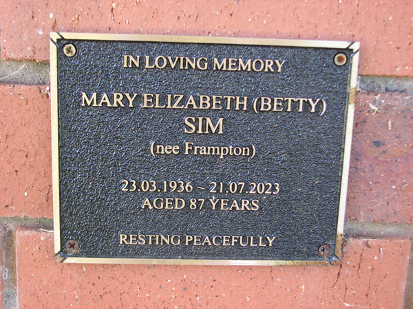 | Sim | Mary Elizabeth 'Betty' | photo | 23/03/1936 | 21/07/2023 | 87 | nee Frampton |