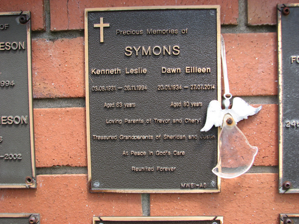 | Symons | Kenneth Leslie | photo | 3/08/1931 | 26/11/1994 | 63 | f/o Trevor and Cheryl, gf/o Sheridan and Justin |