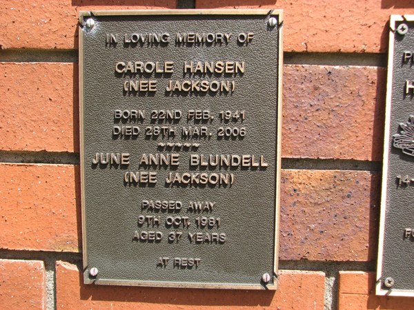 | Blundell | June Anne | photo | 9/10/1981 | 37 | nee Jackson | |