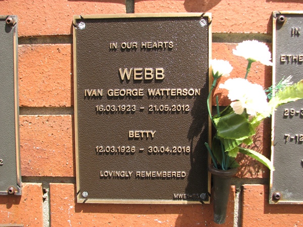| Webb | Ivan George Watterson | photo | 16/03/1923 | 21/05/2012 | ||