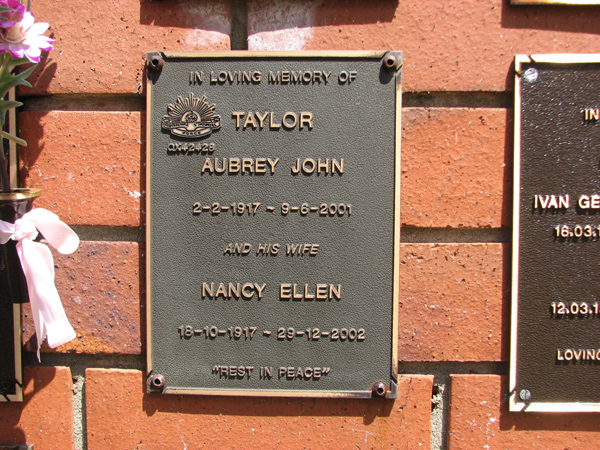 | Taylor | Aubrey John | photo | 2/02/1917 | 9/06/2001 | QX42428 | |