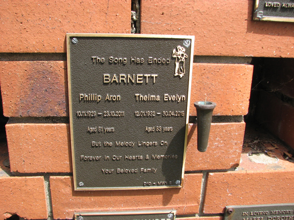 | Barnett | Phillip Aron | photo | 10/11/1929 | 23/10/2011 | 81 | |