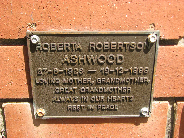| Ashwood | Roberta Robertson | photo | 27/08/1926 | 19/12/1999 | ||