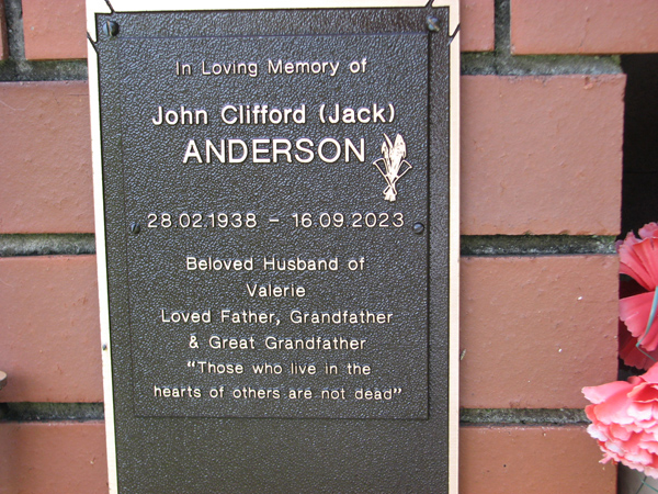 | Anderson | John Clifford 'Jack' | photo | 28/02/1938 | 16/09/2023 | h/o Valerie | |