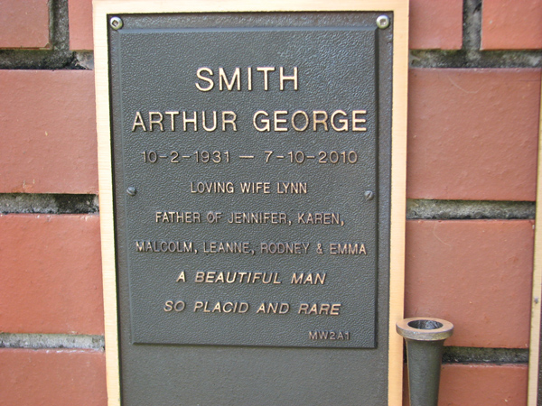 | Smith | Arthur George | photo | 10/02/1931 | 7/10/2010 | h/o Lynn, f/o Jennifer, Karen, Malcolm, Leanne, Rodney & Emma | |