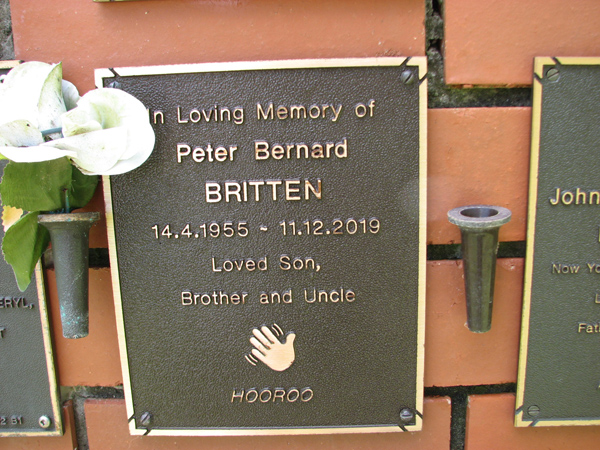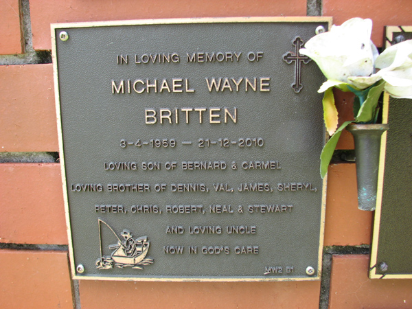 | Britten | Michael Wayne | photo | 3/04/1959 | 21/12/2010 | s/o Bernard & Carmel, b/o Dennis, Val, James, Sheryl, Peter, Chris, Robert, Neal & Stewart | |