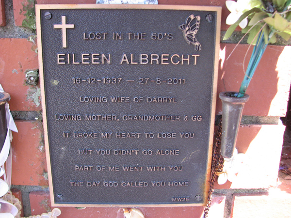 | Albrecht | Eileen | photo | 16/12/1937 | 27/08/2011 | w/o Darryl | |