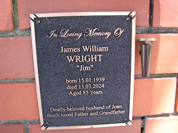 | Wright | James William 'Jim' | photo | 15/01/1939 | 13/03/2024 | 85 | h/o Joan |