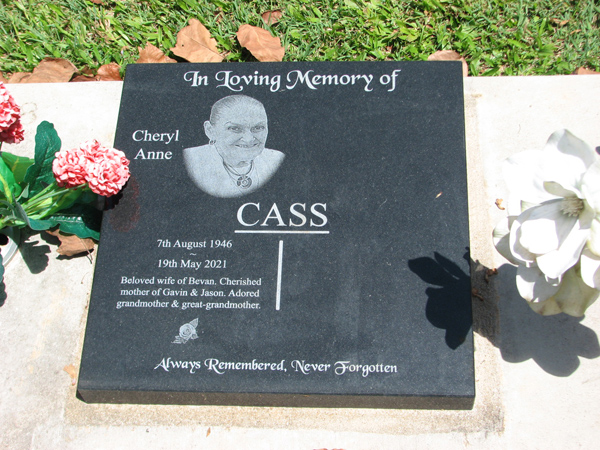 | Cass | Cheryl Anne | photo | 7/08/1946 | 19/05/2021 | w/o Bevan m/o Gavin & Jason | |