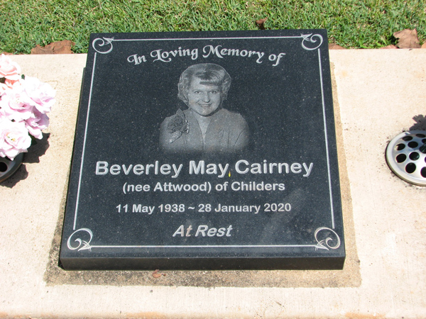 | Cairney | Beverley May | photo | 11/05/1938 | 28/01/2020 | nee Attwood, of Childers | |