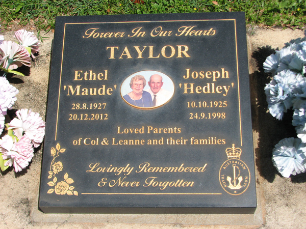 | Taylor | Joseph 'Hedley' | photo | 10/10/1925 | 24/09/1998 | f/o Col & Leanne | |