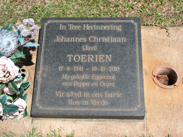 | Toerien | Johannes Christiaan 'Jan' | photo | 17/08/1941 | 19/10/2010 | ||
