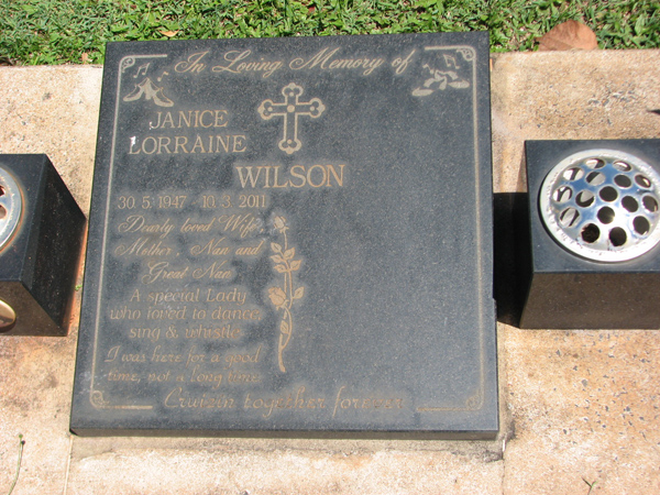 | Wilson | Janice Lorraine | photo | 30/05/1947 | 10/03/2011 | ||