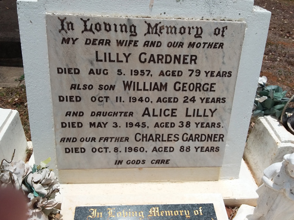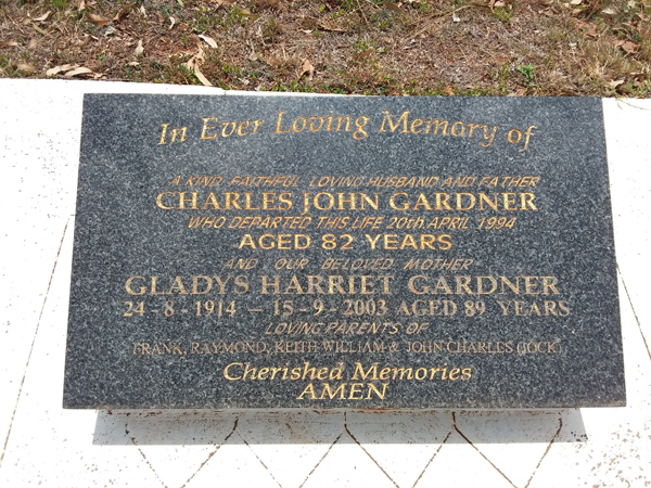 | Gardner | Charles John | photo | 20/04/1994 | 82 | Parents of Frank, Raymond, Keith William & John Charles (Jock) | ||