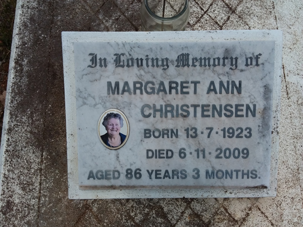 | Christensen | Margaret Ann | photo | 13/07/1923 | 6/11/2009 | 86y 3m | ||