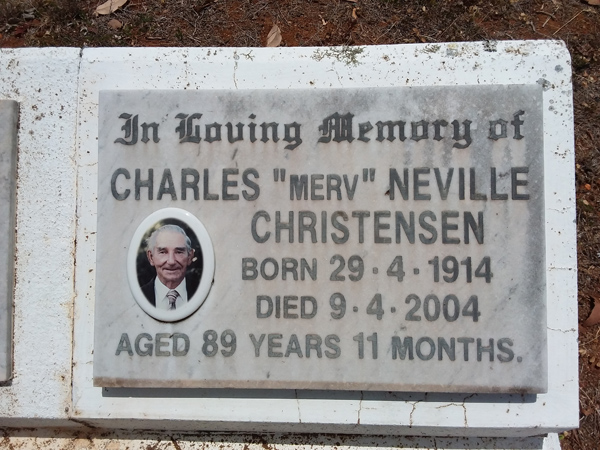 | Christensen | Charles 'Merv' Neville | photo | 29/04/1914 | 9/04/2004 | 89y 11m | ||