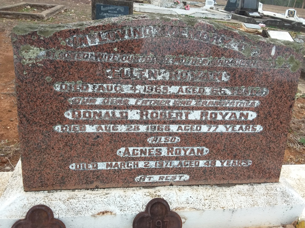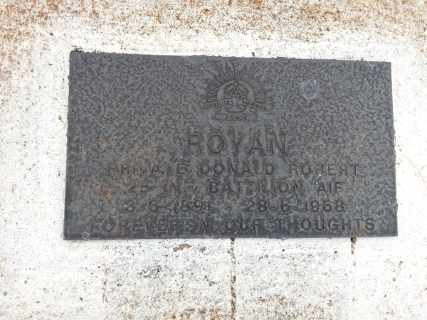 | Royan | Donald Robert | photo | 3/6/1891 | 28/06/1968 | Private 25 Inf Battilion, AIF | ||