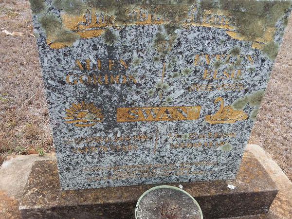 | Swan | Evelyn Elsie | photo | 7/07/1925 | 5/08/1994 | 69 | nee Voss, remembered by son Rodney, daughter in-law Lana, G/children Kim, Lee & Shelly | |