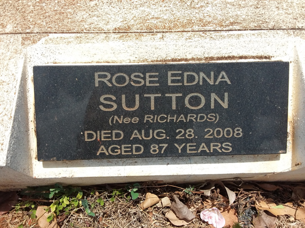 | Sutton | Rose Edna | photo | 28/08/2008 | 87 | nee Richards | ||