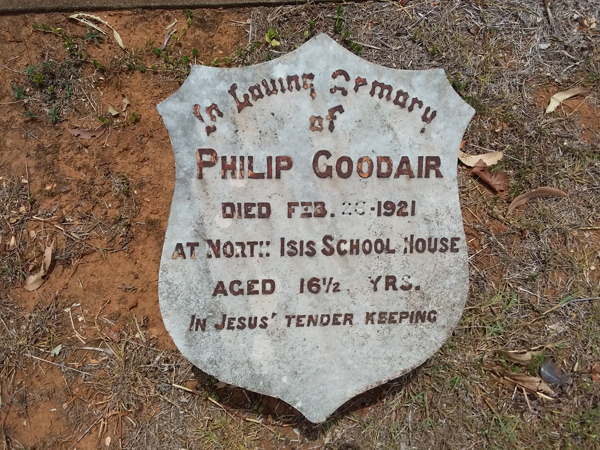 | Goodair | Philip | photo | 26/02/1921 | 16y 6m | Died North Isis School House | ||