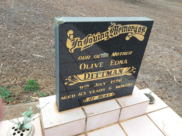 | Dittman | Olive Edna | photo | 9/07/1996 | 83y 6m | |||