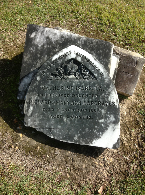 | Hargraves | Catherine Isabella | photo | 48 | 26/3/1885 | 4m | d/o Richard & Mary Ann Hargraves | ||