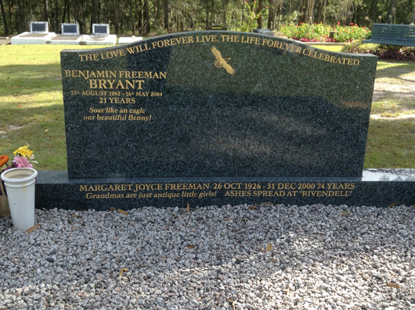 | Freeman | Margaret Joyce | photo | 66 | 26/10/1926 | 31/12/2000 | 74 | Ashes spread at 'Rivendell' | |