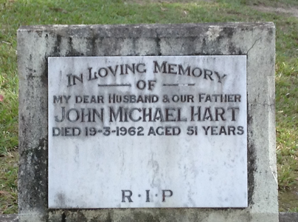 | Hart | Mary | photo | 103 | 18/9/1893 | 50 | w/o Michael Hart | ||