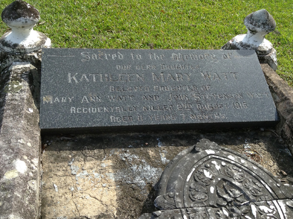 | Watt | Kathleen Mary | photo | 112 | 2/08/1915 | 11y 7m | d/o Mary Ann Watt & John Stevenson Watt | ||