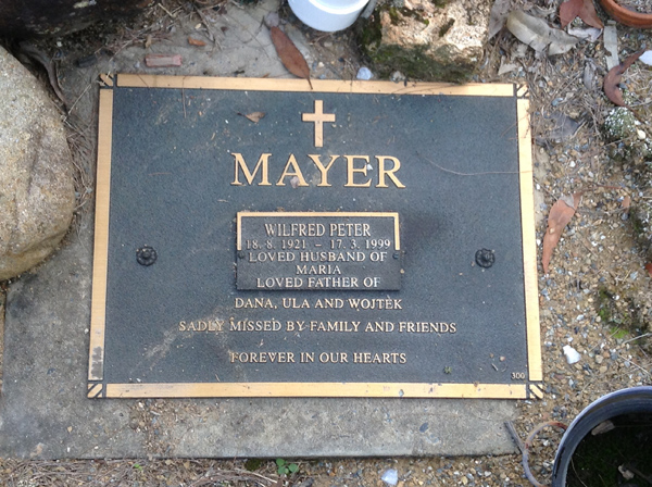 | Mayer | Wilfred Peter | photo | 135 | 18/08/1921 | 17/03/1999 | h/o Maria f/o Dana, Ula & Wojtek | ||
