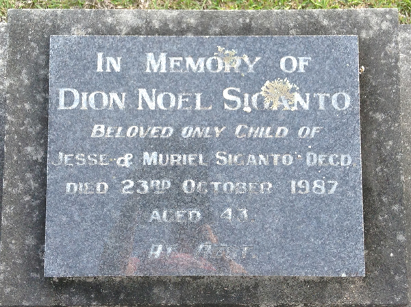 | Siganto | Dion Noel | photo | 141 | 23/10/1987 | 43 | s/o Jesse & Muriel Siganto Decd | ||
