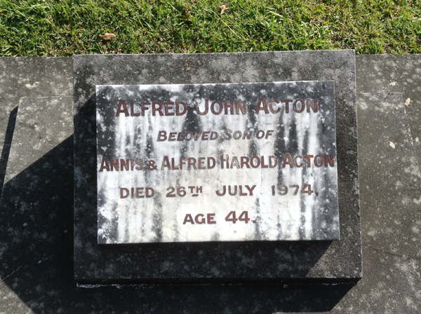 | Acton | Alfred John | photo | 144 | 26/07/1974 | 44 | s/o Annis & Alfred Harold Acton | ||