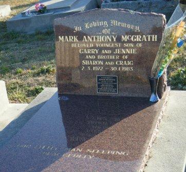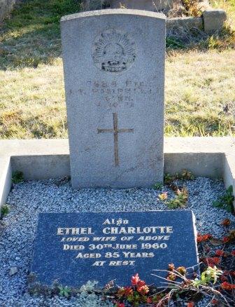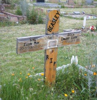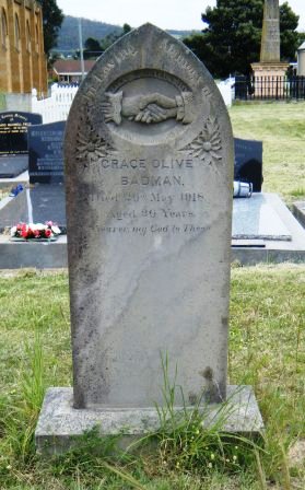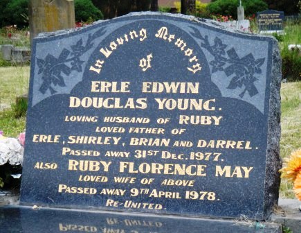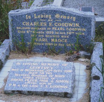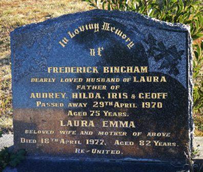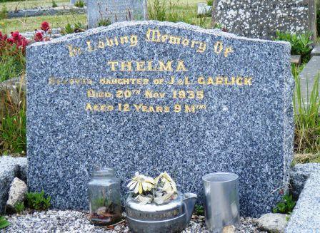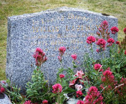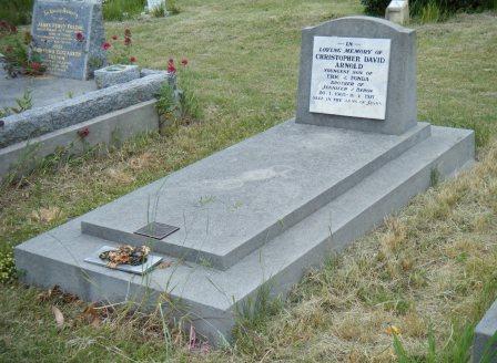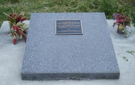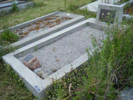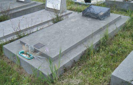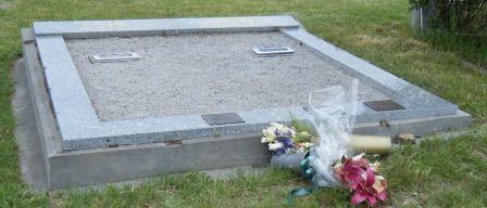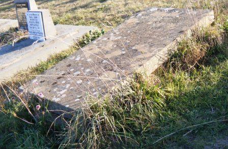 Headstone lying in the grave of