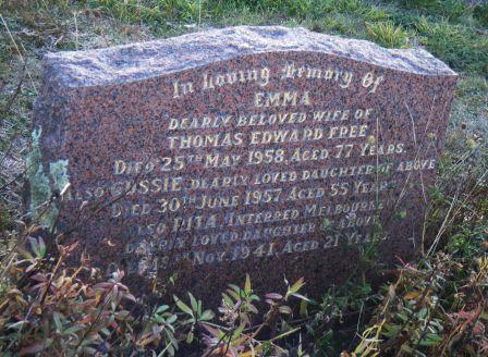 An illegible pioneer stone. Could it mention a Henrietta Free?