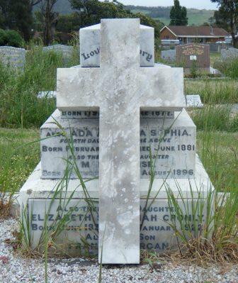 An older marble headstone, the lettering now too worn to read.